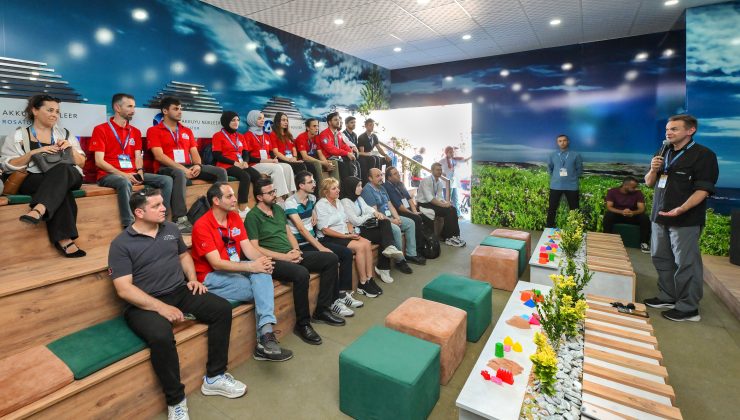 Konferans salonunda ise Rusya’da aldıkları eğitimlerin ardından Akkuyu NGS’de görev yapan Türk nükleer mühendislerinin katılımıyla santralin inşaat sahasına video turu düzenlendi. Ziyaretçiler, “gerçeklik uygulaması” ile Akkuyu NGS’yi keşfetme fırsatı buldu; santralin iç yapısını, reaktör binasının detaylarını ve tesisin güvenlik sistemlerini görsel olarak inceleme şansı yakaladı.